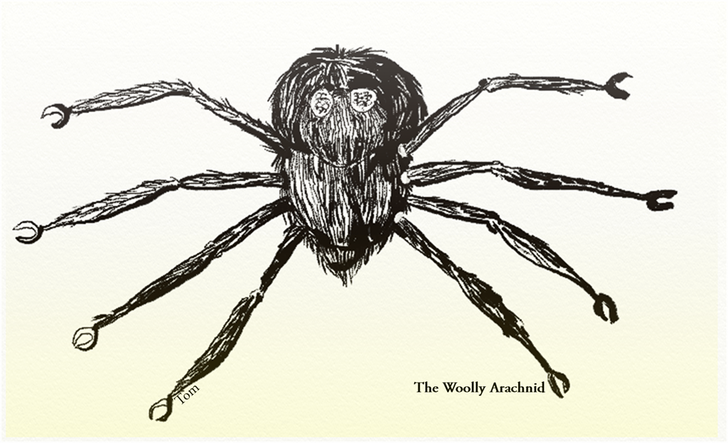 The Woolly Mammoth is one of the woolly creatures of yesteryear that is particularly well known to virtually everyone today… and possibly the folk who lived in those days as well. The Woolly Rhinoceros is another, although slightly less known. Other creatures were even more rare… the Woolly Hippopotamus for one; the Woolly Fish for another, and the creature that is featured in the image above… the very first woolly jumper to have ever existed, the Woolly Spider… or, to be more accurate, lanigeris aranea.