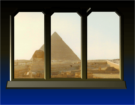 The view from the small window this morning is of one of the great Pyramids. I love the Pyramids, and the Sphinx of course, obviously because of their ties to way back when.