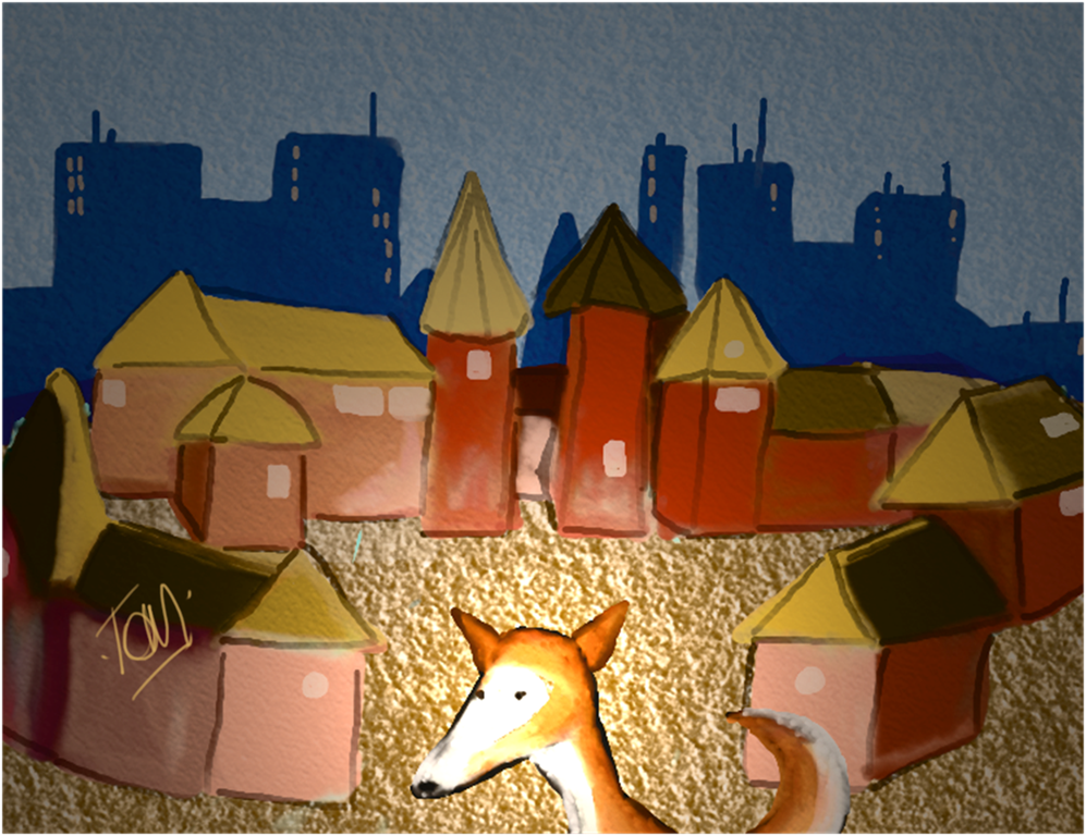 The first version I saved was a lot brighter, and a lot more colourful, but I wanted to tone down both the brightness, and the colour and bring the attention more onto the fox, rather than the buildings.