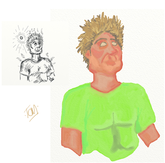 Remember that sketch I did the other day? The frazzled one? I’m embellishing it.