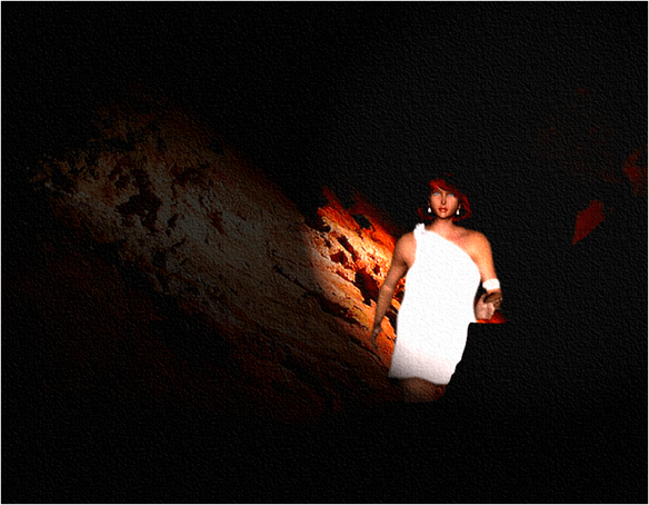 From the shadows, she emerged. It appeared she was creating the shadows as the light was emanating from her, but that is somewhat improbable. Not impossible, however, we are in the Catacombs, don’t forget. The Catacombs below the Mansion.