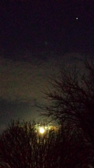 I’ve taken a few shots on my mobile phone. Apologies for the graininess of the photos, but I had to zoom in to the maximum to get any kind of decent picture at all; the Moon was too bright otherwise.