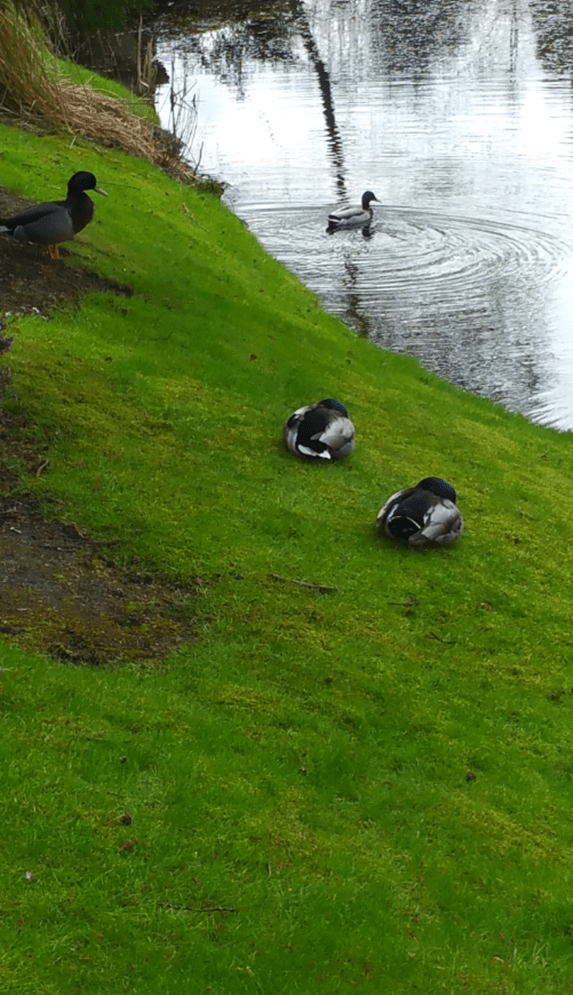 Wow! You guys are way ahead of us here across the pond…Still brown, dead and now white again 😦 Does the weather manipulation ever end? Those guys lined up on shore just didn’t want to take swim lessons, they wanted to sleep in late for the weekend….Better safe than sorry ‘duckies’…VK