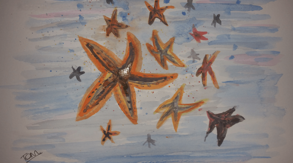 A constellation of starfish, that is! A very quick doodle this – I just let the colours spread.