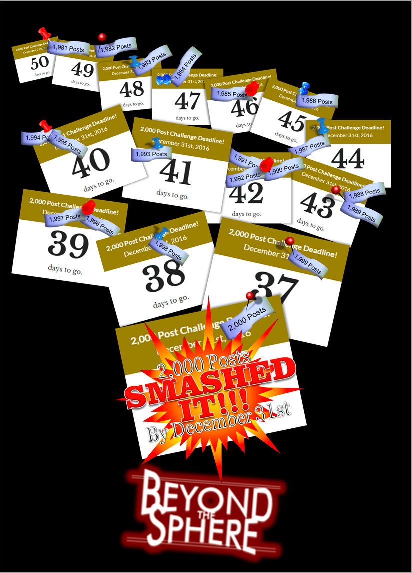 I was determined I was going to see this challenge out. On February 29th this year, I outlined what I needed to do. I simply had to publish another 399 posts back then by the end of the year to achieve my goal. Well, I SMASHED it!