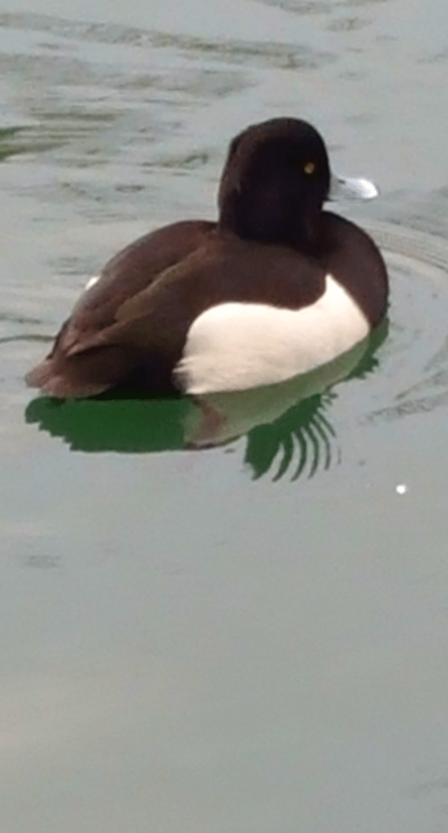 My second theory is that it is just a reflection of his head, fragmented by the ripples caused as he is swimming along – his leg can just about be seen there. It’s quite a nifty effect, though!