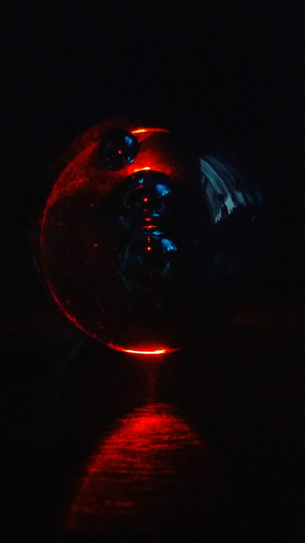 I have hundreds of photos which could provide a little something that would stir the imagination, but nothing that stood out to me that would literally fire the imagination. I started to think that I’d have to miss this week’s theme, and then I noticed a blue and clear paperweight that was doing something funky with a red light behind it. I refer to the paperweight as a crystal ball, and as I looked into it, new worlds started to appear within. As the daylight was also fading, the reflection of the window also had a couple of effects – one that it blended with the Surreal Reality in front of me, and the other was that it provided a clear link to the actual reality surrounding this world within a world.