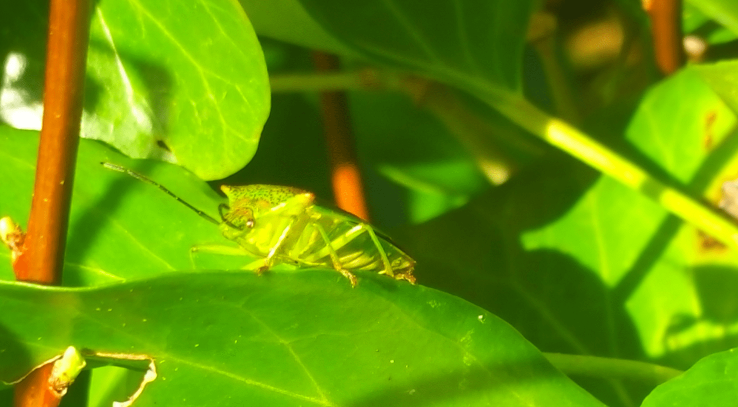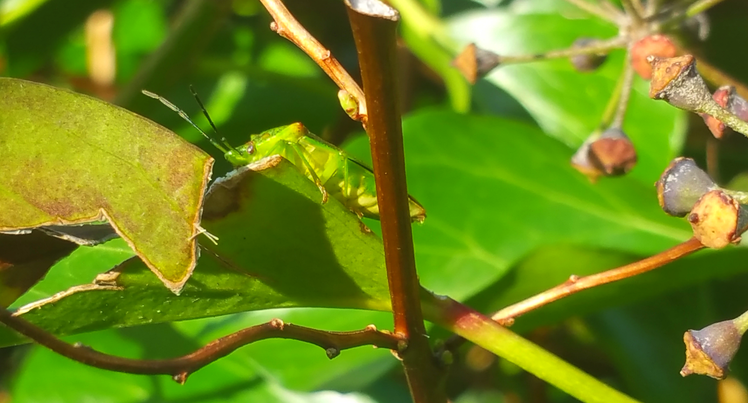 I’d never seen one of these little bugs before, until I discovered one hibernating beneath a strip of wood earlier this year; and now I see them regularly! I wanted to take a few close up photos, so took my mobile phone out to the hedge to see what I could find, and this little fella’s walk couldn’t have been timed better!