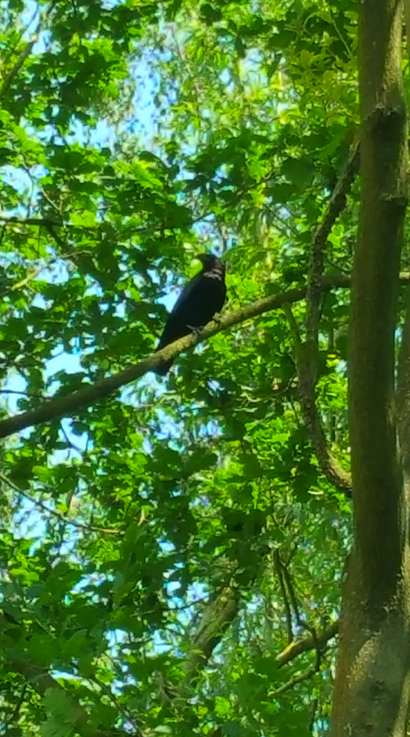 Ahead of me, a raven or crow flew at head height, flying round to make sure I was following. (S )he perched high up and looked over fixedly in one direction. What was I being showed, so I looked over in the same direction.