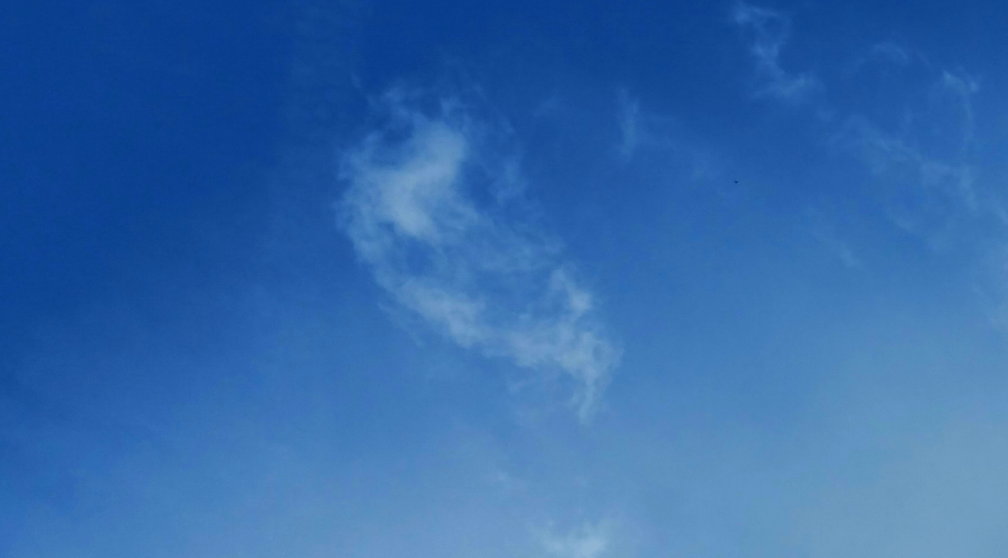 The sky was a gorgeous shade of blue on Sunday afternoon, with quite a mixture of clouds floating overhead and rapidly transforming their shapes. I took a few photos, to use as backgrounds for any forthcoming images I create, when I noticed a face in one of them. I hadn’t noticed it when I was taking the photos, as all I could see were cloud-shaped clouds, but the face is definitely there.