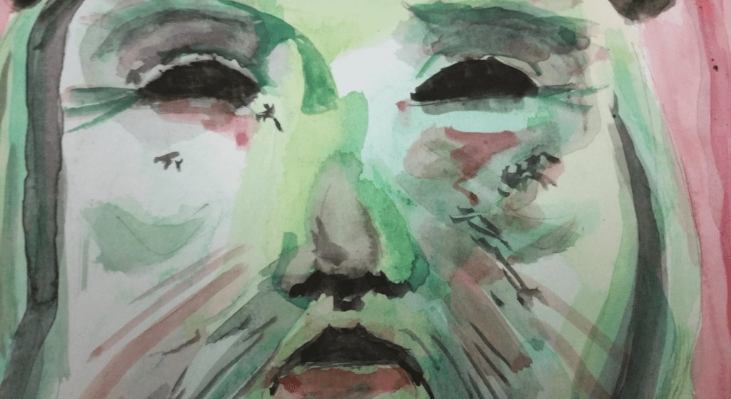 Tonight, with hardly any time to dip a paintbrush into water, I decided to paint my interpretation of this chap. Initial sketching, painting, and photographing took only thirty minutes – you can probably tell. Writing this took another thirty, and put my schedule back even more. Ah well. What’s time anyway?