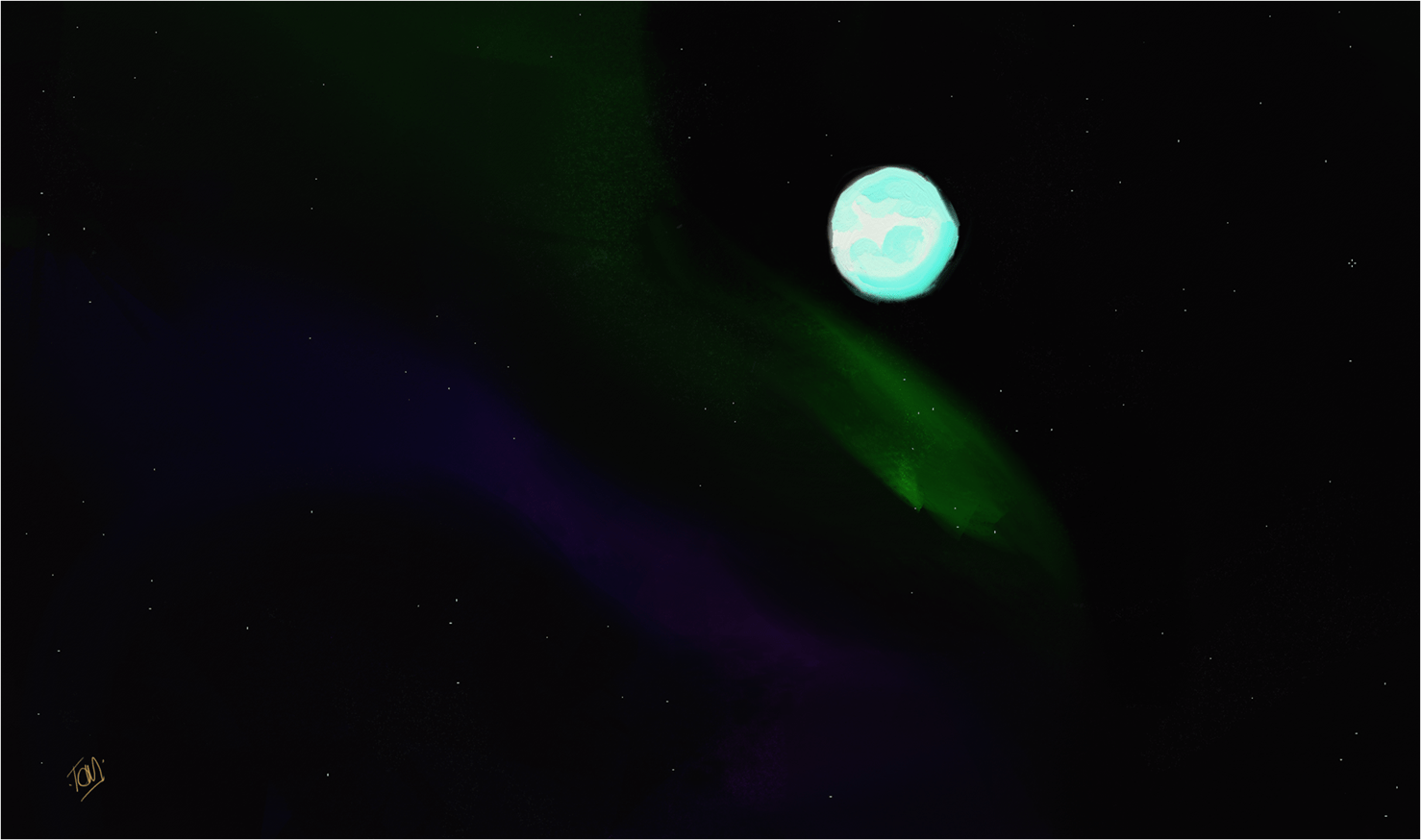 Posted in response to Frank’s ‘If’ Challenge. I created a multi-coloured Universe and was just adding my Moon when my art program crashed on me – sending all of those amazing colours out into the Ether and out into the Universe. Nothing was saved. On my second attempt, I created the above image, inspired by the Aurora Borealis (not that I have seen it personally myself). Sometimes, simpler is better. Don’t overthink and just do. So then I didn’t think and just wrote.