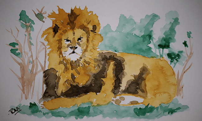 A very quick (as is the norm!) wet on wet watercolour. I wanted to do a lion, and this is what turned out in the time I had. I dabbed as the colours worked… or something like that, anyway!