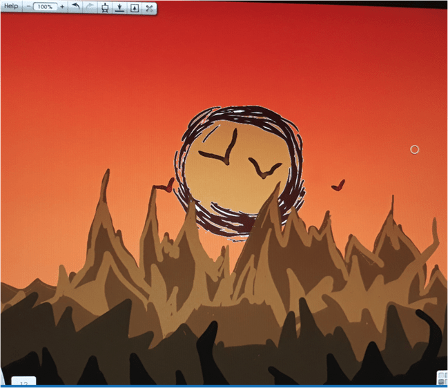 I’ve started a digital painting of a random terrain somewhere, with very prickly mountains… so I merely took a Square photo of the computer screen, spikes and all! Below is a screenshot of the same theme. This one isn’t square.