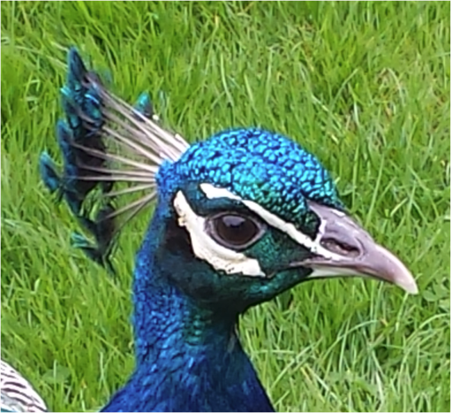 Featured in the image is Olive the Peacock. He can be a little spiky at times, as his head feathers show. And his beak is a little pointy too.