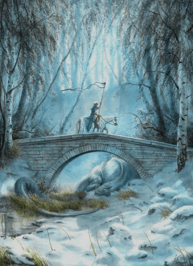 “Steady, boy!” Heavyweight reassured, as George whinnied nervously. “There’s nothing down there only snow!” George shook his head from side to side. “A few more steps and we’re across, into the safety of the Grand Kingdom.”