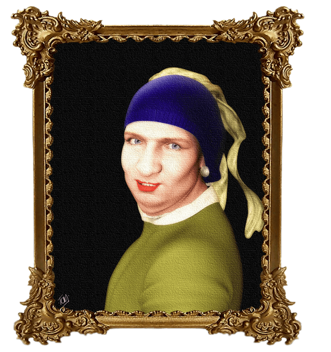 This rip off version of a classic is based upon Girl with a Pearl Earring, an oil painting by Dutch painter Johannes Vermeer, dated around 1665. There is a movie of the same name, starring Colin Firth (as Vermeer, not the girl!), which wasn’t the inspiration for this picture, as I haven’t seen that movie. The painting wasn’t named as such when it was first done, but this is the name it currently holds.