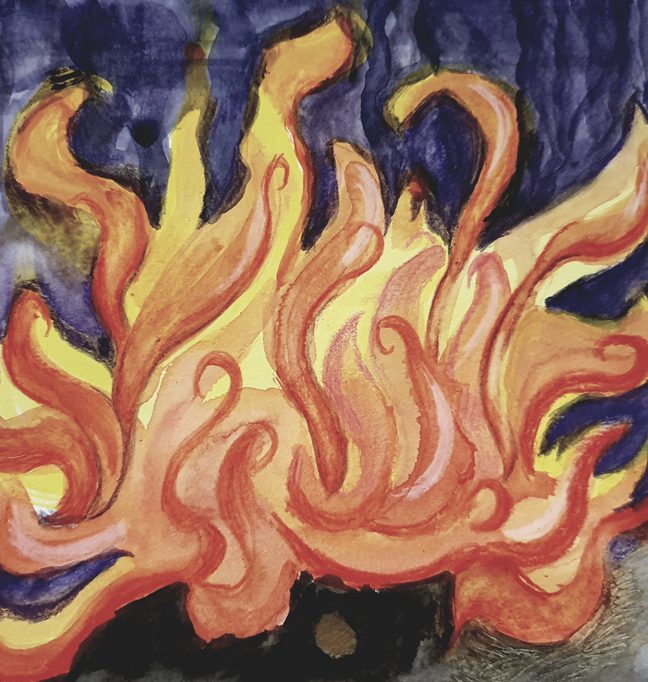 As for the ‘rough’ look, well… have you ever seen a still flame? And besides, it was a very quick painting. Fire in watercolour… who’d’ve thunk it?