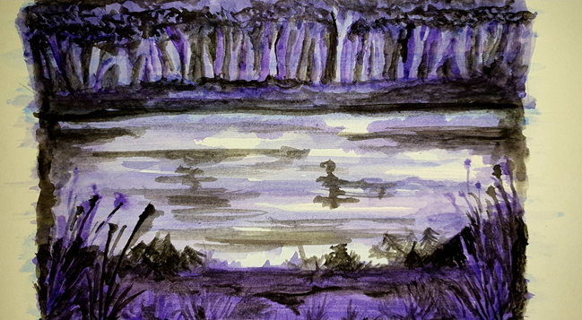 ‘Quiet’ is the latest theme for #WorldWatercolorMonth, and I was transported to a view of a river at night. Obviously, the Moon was quite bright, otherwise visibility would have been a little poor. Even the water flows with a serene gentleness at night, helping all the forest dwellers to sleep soundly. In the silvery light, strange shadows can be seen, but surely they’re from the realms of the imagination.