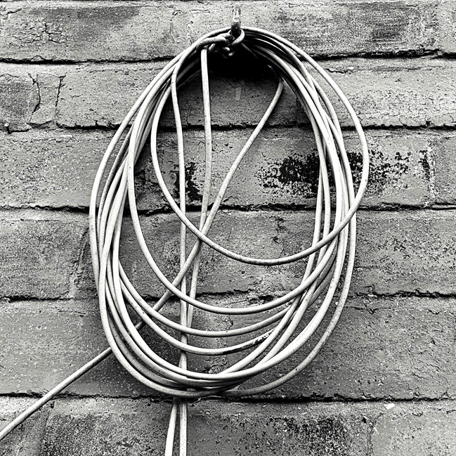 Only it isn’t ropey at all… it’s an old, broken, weathered washing line hanging on a wall. It also appears to have three ends in this photo… which, in all reality, it probably doesn’t.