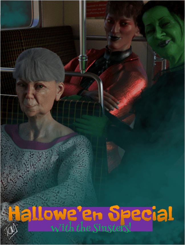 Queenie grabbed hold of Mrs Sinster’s arm, and all three vanished into the orange light. When Queenie’s vision came back to her, she was no longer on the bus. She was sat in a sofa in a living room, still holding onto Mrs Sinster. “Oh, I’m sorry.” She said, releasing her tight grip.