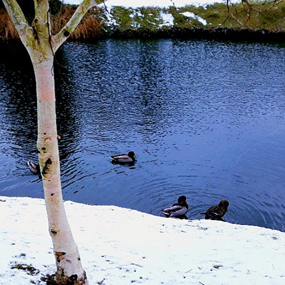 As we’re forecast to have very hot temperatures this weekend, I’m sticking with my Winter theme for Becky’s #TreeSquares. We’re almost down to the bare branches in this photo; plenty of water, a few ducks hither and thither, snow-covered banks, and a tree. In fact, you may be able to see a few bare branches … Continue reading And today we’re staying with Winter