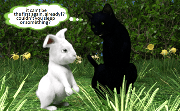 Yeah….Give that poor rabbit a break!!!! He’s so busy scooting around the globe we’re lucky he was able to stop by for Easter! Three cheers for the white rabbit!!! Happy Easter TL…Happy egg hunting….VK 🙂