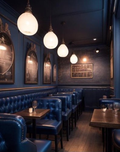 They both walked up the stairs and into the previously mentioned disused room, which had been transformed into an elegant indigo bijou dining room; Denise looked on, open-mouthed.