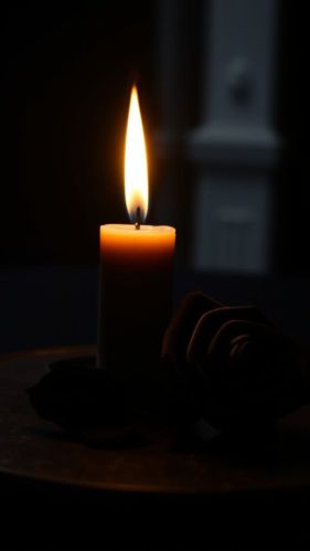 The bright light from the flame attracts me. It cuts through the dark shadows with a blinding ease. As the wind outside echoes its eerie whisper, the flame quietly sings along. There are shapes in the shadows, dancing to the flame's hypnotic call. The shadow-dwellers seem to giggle as they stretch and reach out, elongated fingers pointing and bending at the candlelight's whim. A tap on the window freezes everything for a split second. Blood runs cold. Heart pounds. Skin crawls. Breath becomes both shallow and deep. The soft, breathy whistle cut short by a piercing scream. The darkness falls silent. The candlelight, no more.